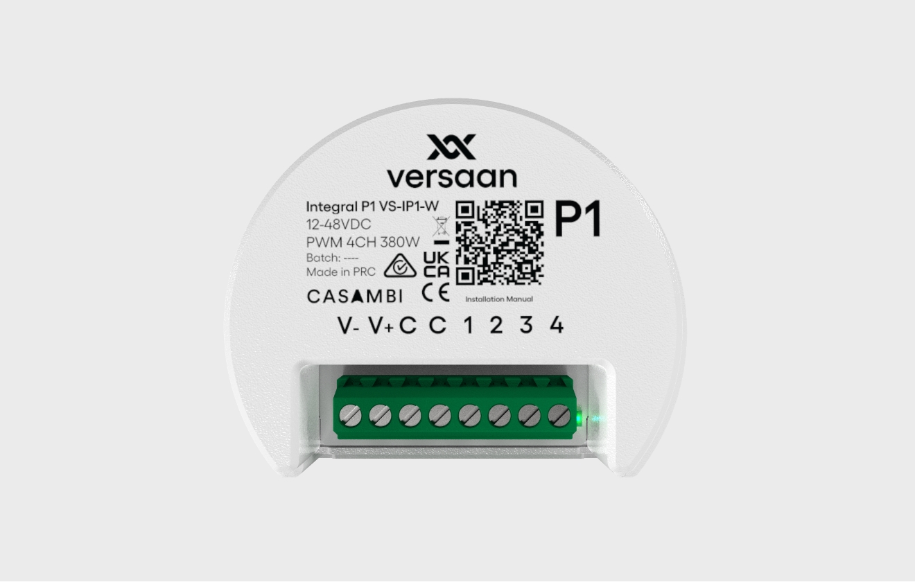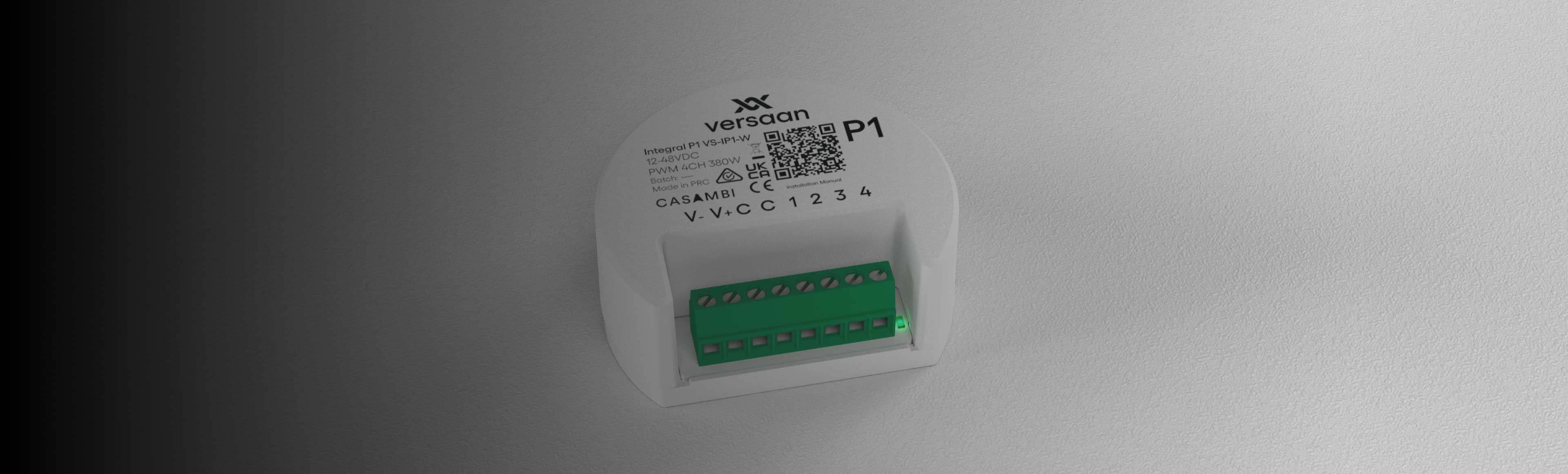 The Integral P1 is a high-performance PWM lighting controller with a wide 12-48VDC input range and up to 300W output. It supports four independent channels for precise LED control of single colour, RGB, RGBW and TW, ensuring smooth, flicker-free dimming. Designed for seamless Casambi app integration, it enables intuitive wireless control, automation, and scene customization for various lighting applications. The P1 is part of the Integral range of controllers offering miniaturised design and expansive control of DALI,Phase-dim, Relay and PWM luminaires.